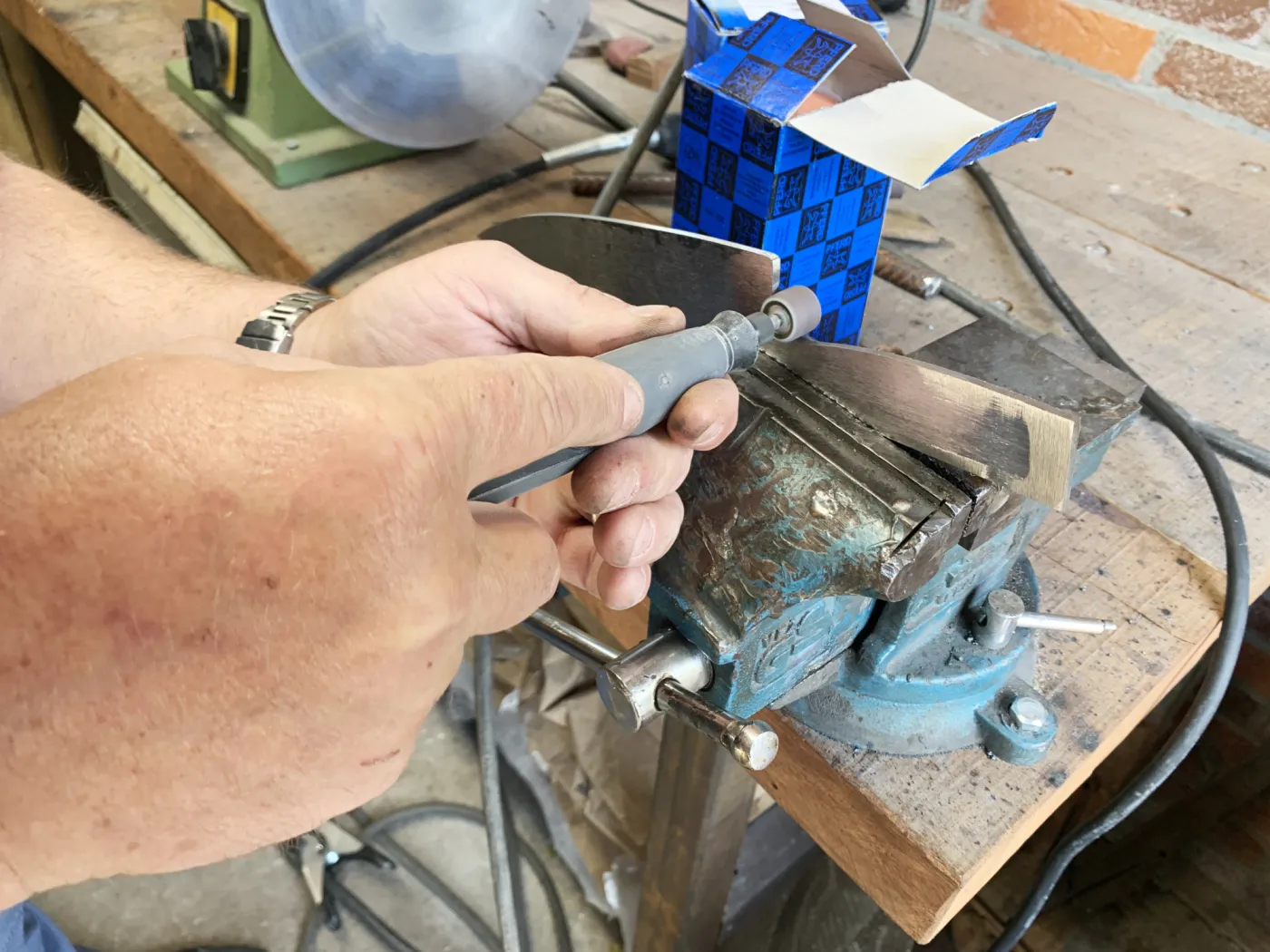 Toller Schmiedekurs bei Gerwin. Vom geschichteten Stahlblock bis zum fertigen Messer. Alles in einem dicht gepackten Wochenende. Vielen Dank! „Gerwin hat uns in allen Schritten des Schmiedens und der Messerherstellung eng begleitet und an seiner Erfahrung Teil haben lassen.