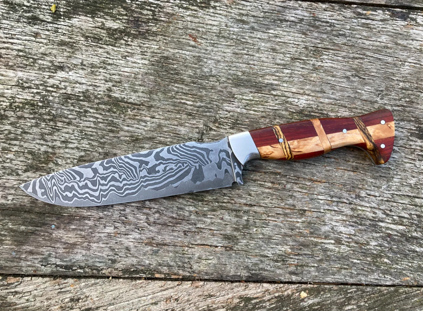 Während einen PLUS DAMAST SCHMIEDEKURS schmieden wir Messer bis 32 cm Gesamtlänge und bis einen Klingenhöhe von 4,5 cm. Damast bis 400 Lagen möglich. Neben Wilderdamast schmieden wir auf wünsch auch Rosen- und Wellendamast. Das anbringen von eine Schneidlage von anderartige Stähle ist auf Wünsch auch möglich gegen ein Aufpreis.
