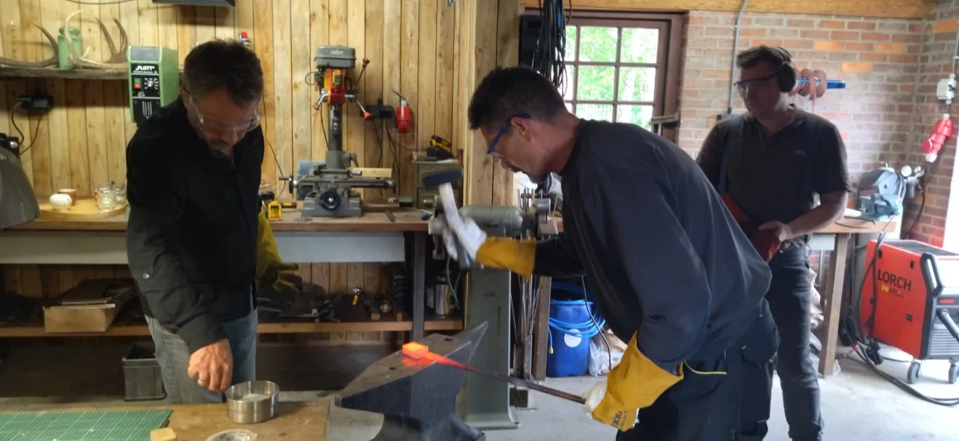 Der PLUS DAMAST SCHMIEDEKURS enthalt ein ganzer Mittag schmieden und 1,5 Tag um von das Geschmiedete ein fertiges Messer zu machen. Sie gehen mit ein Rasierscharfes Messer nach Hause! Erfahrung ist auch hier nicht notwending, wir sind immer dabei und sorgen dafür das Sie mit das Messer von Ihr Traumen nach Hause gehen.